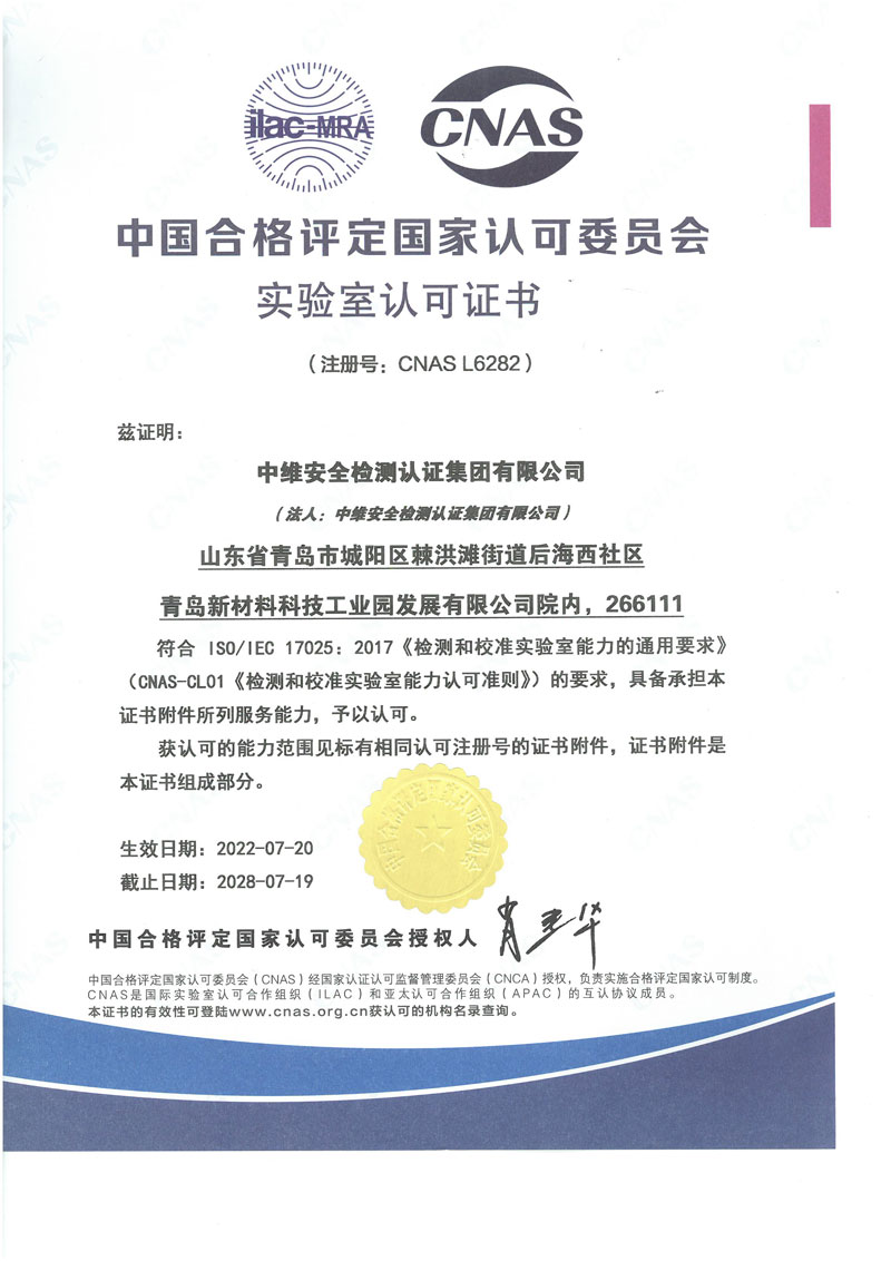 中維安全檢測(cè)認(rèn)證集團(tuán)有限公司(總部地址二):青島市城陽(yáng)區(qū)棘洪灘街道后海西社區(qū)青島新材料科技工業(yè)園