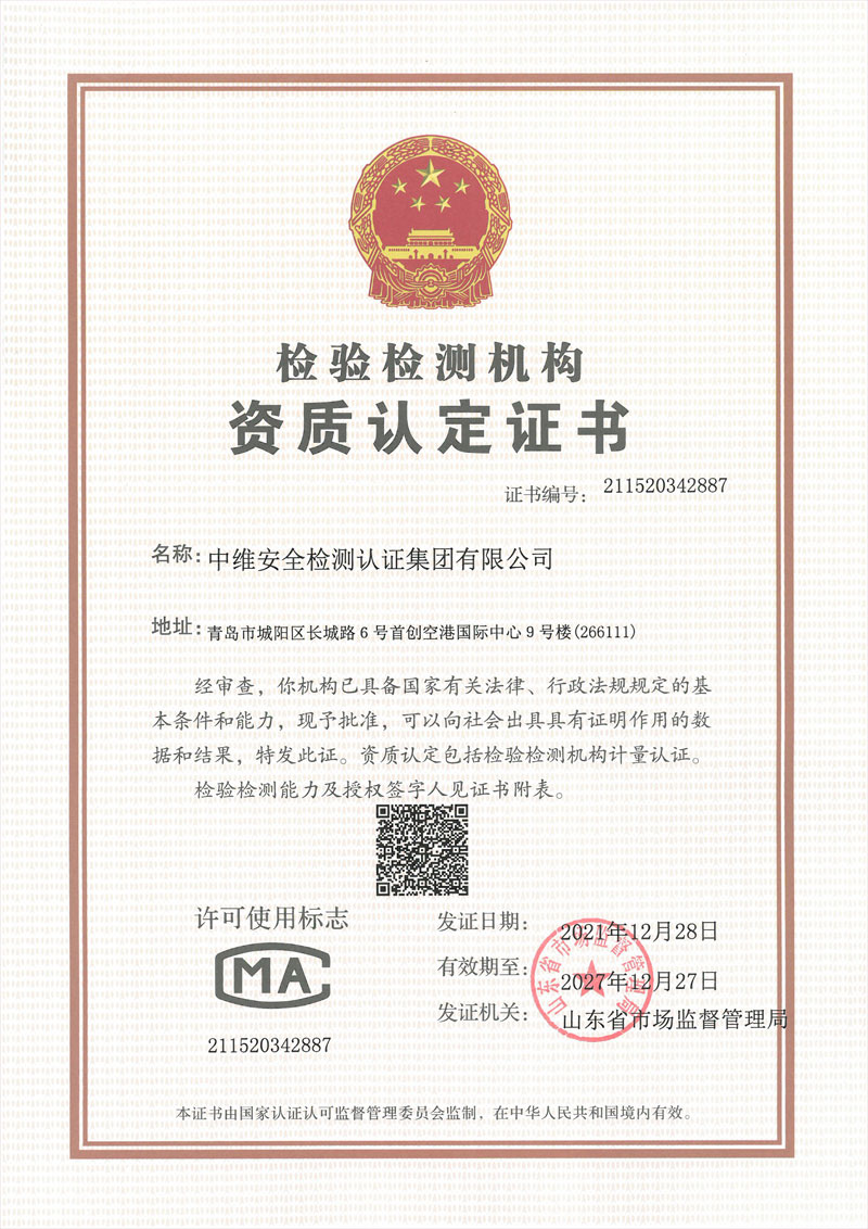 中維安全檢測(cè)認(rèn)證集團(tuán)有限公司(總部地址一):青島市城陽(yáng)區(qū)長(zhǎng)城路6號(hào)首創(chuàng)空港國(guó)際中心9號(hào)樓